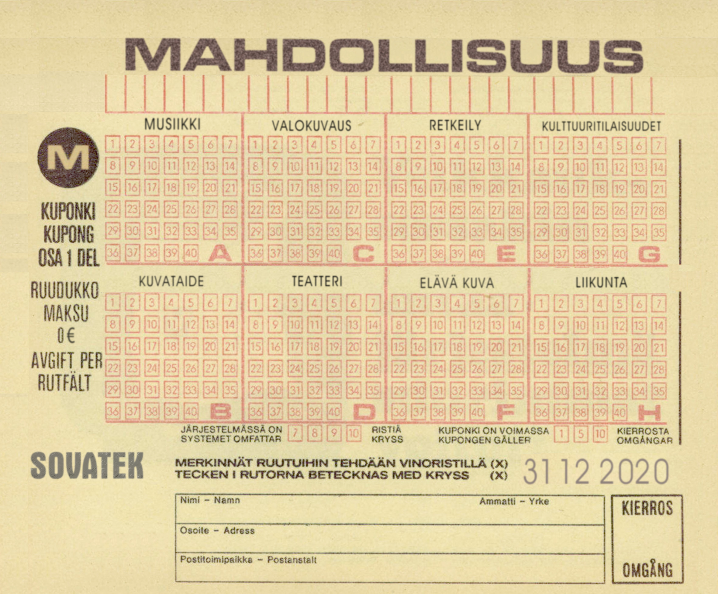 Mahdollisuus-hankkeessa voi vapaasti tutustua erilaisiin kulttuurin ja taiteen aloihin, liikuntaharrasteisiin, luonto- ja kulttuurikohteisiin sekä osallistua erilaisiin ryhmätoimintoihin.